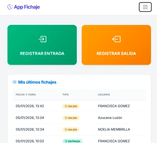 Fichaje seguro y accesible desde cualquier móvil, tablet o PC. Ideal para equipos remotos.